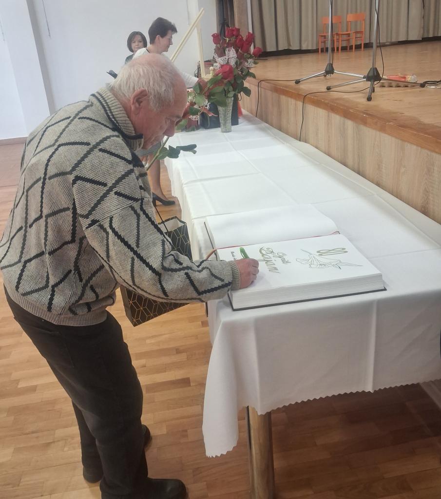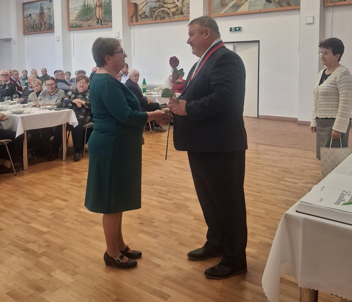 Po milom úvode sa prítomným prihovoril starosta obce Jozef Keseg, ktorý jubilantom poprial veľa zdravia, spokojnosti a životnej pohody. Spolu so zástupkyňou starostu Ing. Šidlovskou odovzdal oslávencom kvet a malý darček ako prejav úcty a vďaky. Jubilanti sa zároveň slávnostne zapísali do kroniky obce.
