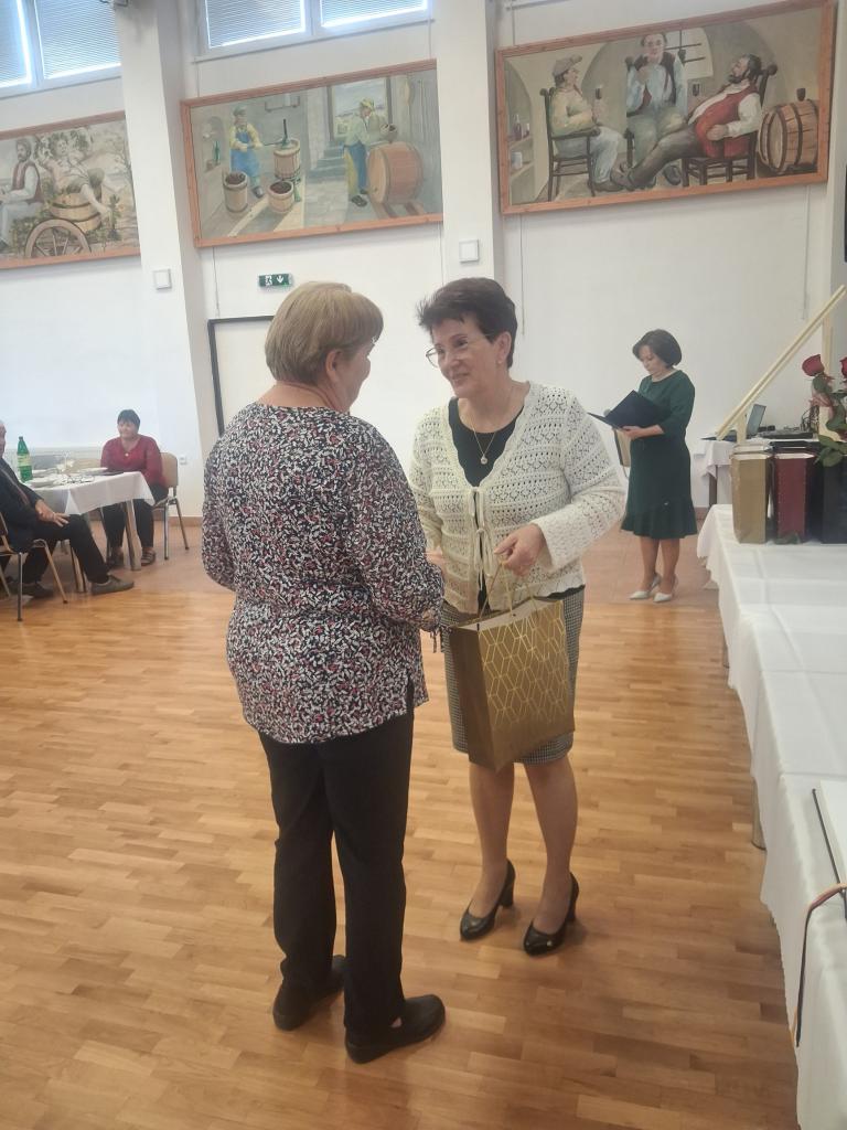 Po prípitku a spoločnom obede nasledovalo vystúpenie folklórnej skupiny Slažianka, ktoré spríjemnilo celé popoludnie. Účastníci si počas programu vychutnávali kávičku, chutné zákusky, domácu štrúdľu a pagáče, vďaka čomu vládla v sále príjemná, srdečná atmosféra plná úsmevov a spomienok.