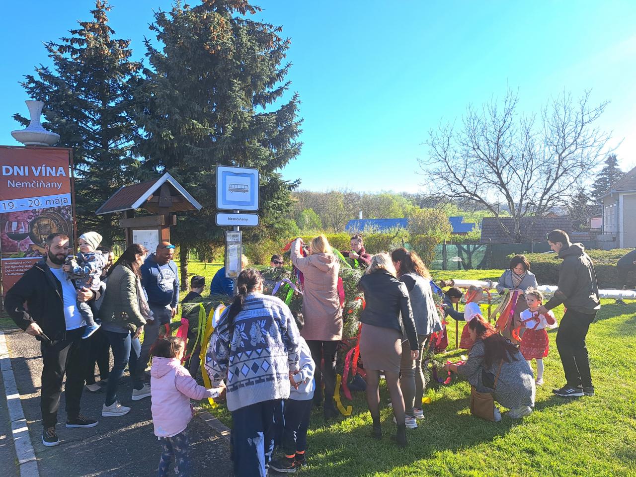 V nedeľu 30.4.2023 sme sa spoločne tradične stretli pri stavaní mája. Pán starosta Jozef Keseg všetkých srdečne privítal. Detičky z našej materskej školy spievali, tancovali a navodili všetkým krásnu náladu. Potom ozdobovali stužkami strom- máj a naši mládenci vlastnými rukami postavili máj. Poslanci obecného zastupiteľstva ponúkali občanom občerstvenie- chutné pagáče, ktoré napiekli naše dôchodkyne z Klubu dôchodcov a vínko, ktoré poskytol Spolok vinohradníkov a vinárov Nemčiňany, pálenku a nealko. Všetkým veľké ĎAKUJEM.